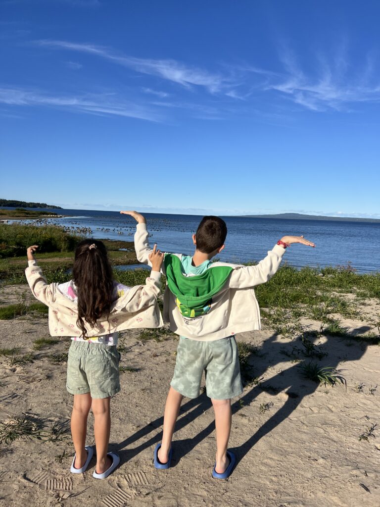 Voyager avec ses enfants, c’est les inclure dans votre projet. Depuis les préparatifs jusqu’au moment présent. Cela peut être : « Ca vous dit de visiter cette ville ? », « Prêts pour cette rando de folie ? » ou « Comment dit-on salut en suédois déjà ? ».