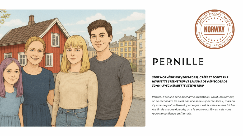 Pernille, c’est une série au charme irrésistible ! On rit, on s’émeut, on se reconnaît ! Ce n’est pas une série « spectaculaire », mais on s’y attache profondément, parce que c’est la vraie vie sans tricher. A la fin de chaque épisode, on a le sourire aux lèvres, cela nous redonne confiance en l’humain.