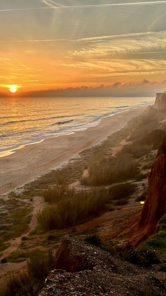 Que ce soit au Portugal, en Norvège ou à Saint-Marin, les routes nous ont toujours réservé leur lot de surprises. Je me souviens encore de cette petite route portugaise, non goudronnée. Le camping-car était secoué dans tous les sens et la piste semblait interminable. À chaque virage, on se demandait si elle finirait un jour… et pourtant, ce sont souvent ces moments-là qui deviennent les souvenirs les plus marquants. D’ailleurs, le jeu en valait la chandelle, la magnifique plage de falaises rouges à Albufeira.